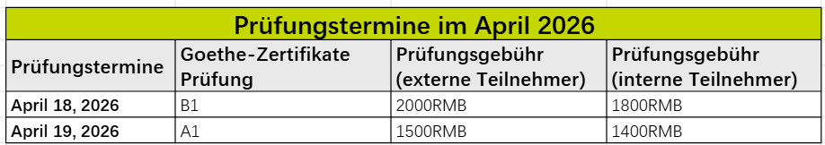 - Zur Einschätzung Ihres Deutschkenntnisniveaus können Sie uns per E-Mail kontaktieren, um einen Einstufungstest zu vereinbaren (Gebühr: 100 RMB).