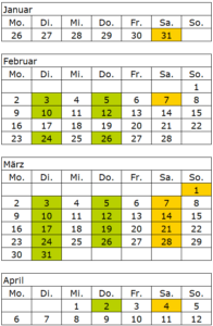 31.01.2026-04.04.2026 (Kursfrei: 13.02.-23.02.2026, 28.02.2026)