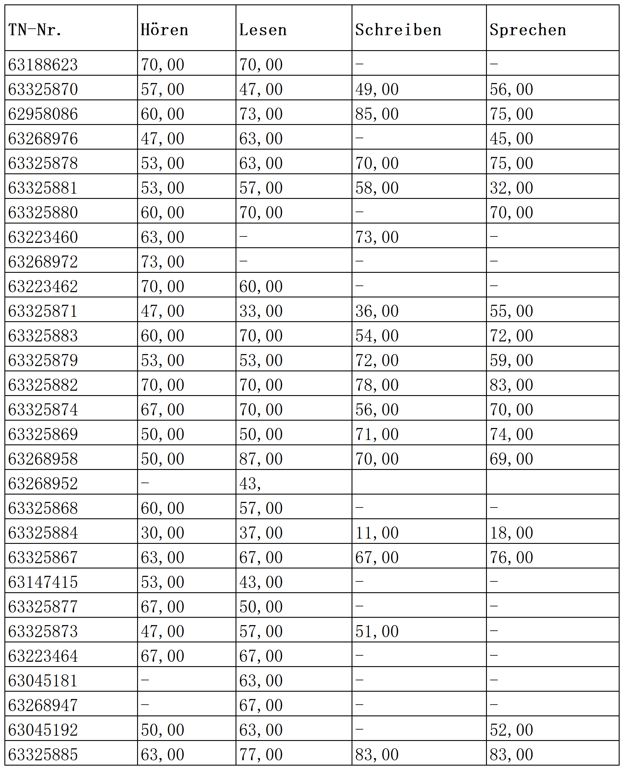 Results of Goethe-Zertifikat Exam B1 on March 21, 2026