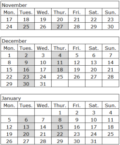 November 25, 2025 – January 22, 2026 (No Course: on December 25, from January 1 to January 4)