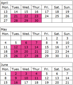 April 21, 2026 – June 16, 2026 (No Course: from May 1 to May 5)
