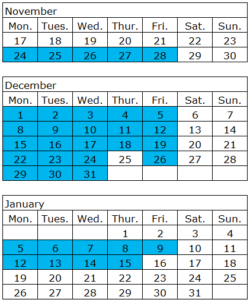 November 24, 2025 – January 15, 2026 (No Course: on December 25, from January 1 to January 4)