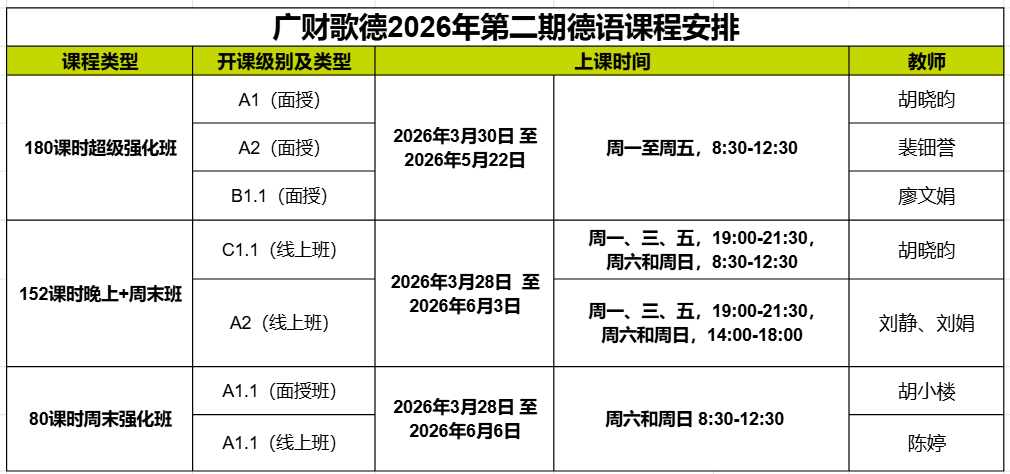广财歌德2026年第二期德语课程!