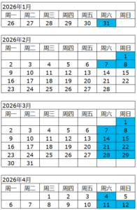 2026年1月31日-2026年4月12日(停课:2月9日至2月28日,4月5日)