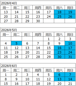 2026年4月18日-2026年6月14日(停课:5月1日至5月4日,5月9日)
